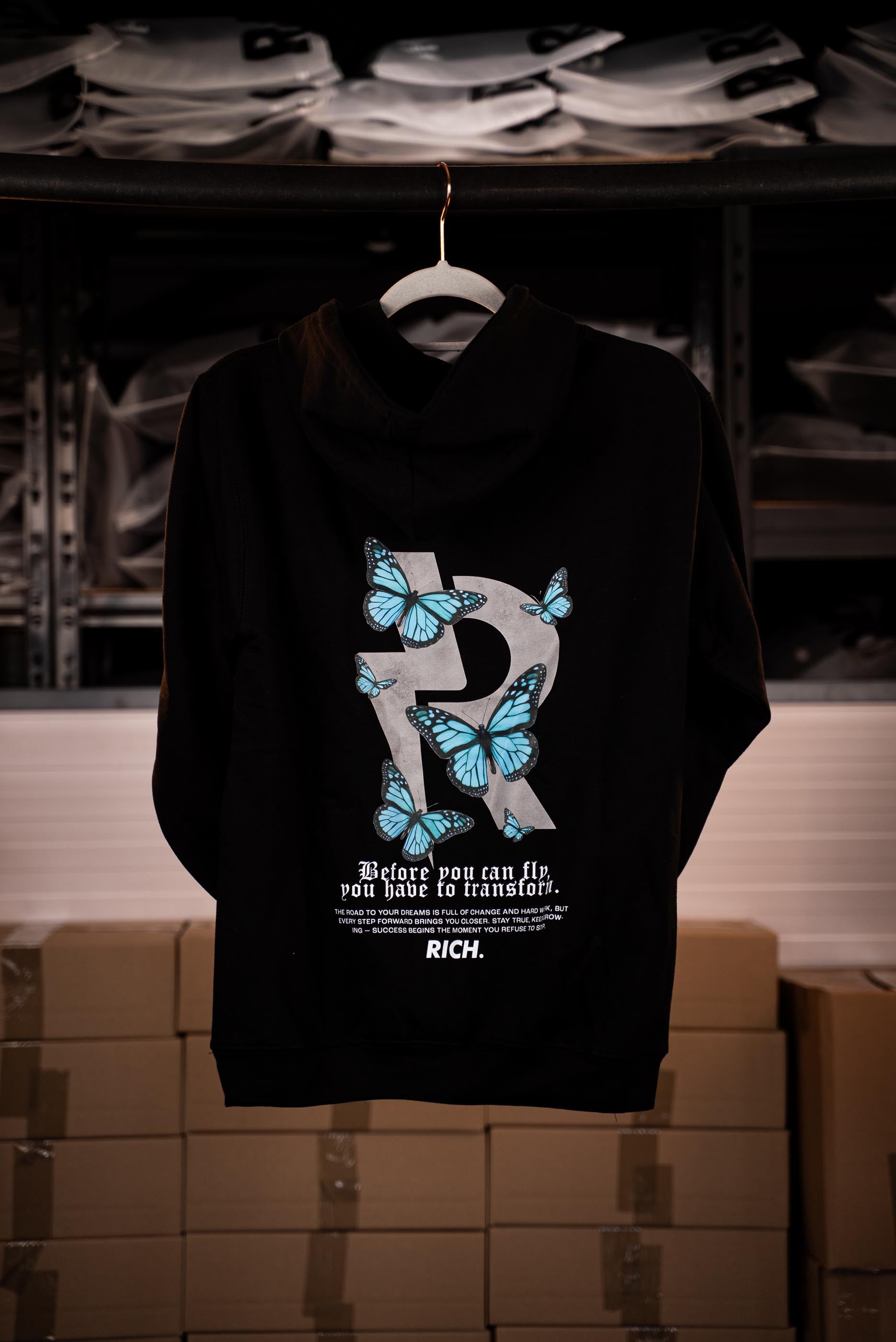 A BUTTERFLY HOODIE az átalakulás szimbóluma — a kemény melóé, amit senki sem lát, de mindenki észrevesz, mikor elérted a célod.