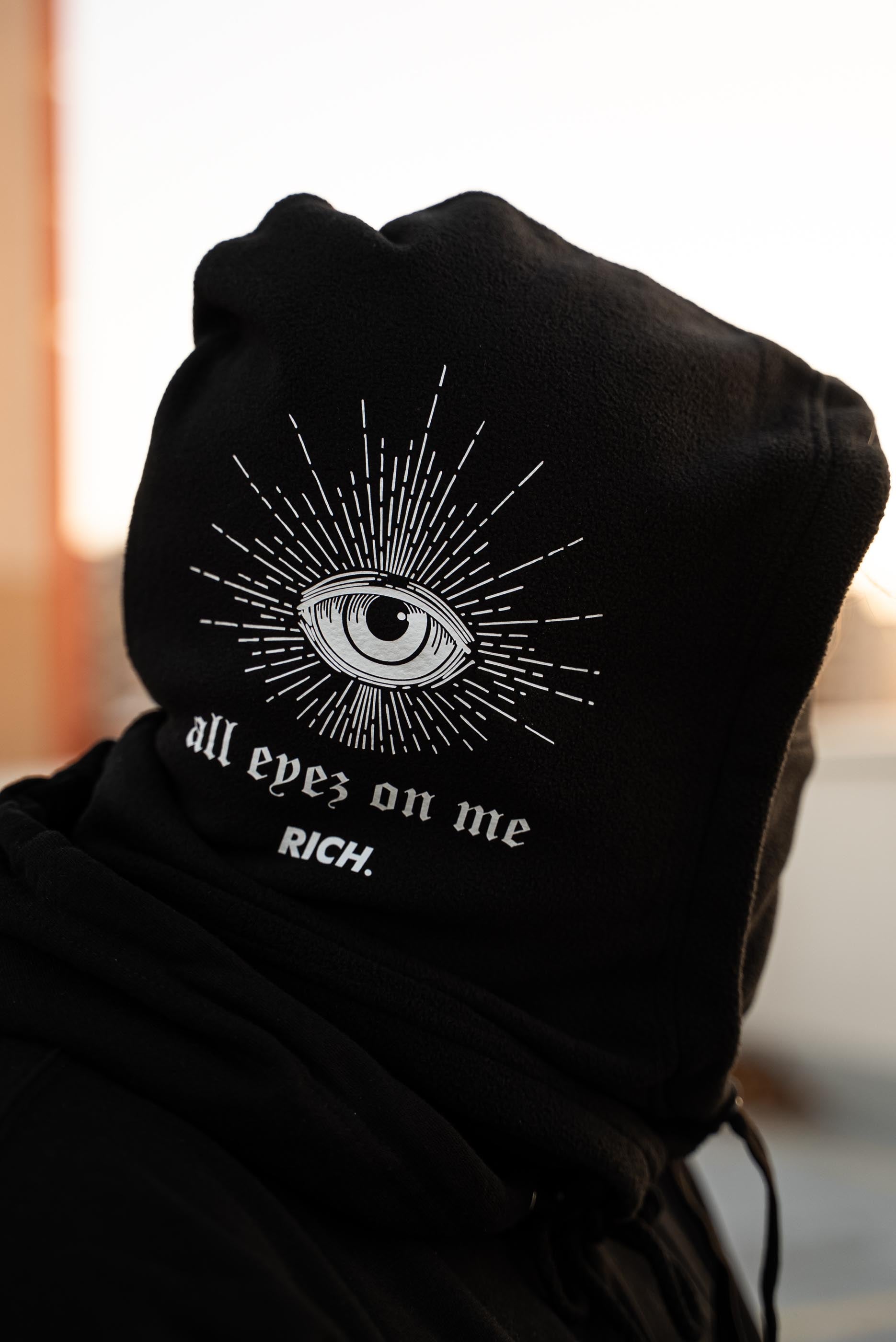 Az EYES ON ME FACEMASK nem csak melegen tart – hanem rád fagyasztja a tekinteteket. Puha, prémium polár anyag, ikonikus All Eyez On Me printtel, hogy tudd: minden szem rajtad van, tesóm. Rejtőzködj stílusosan.
